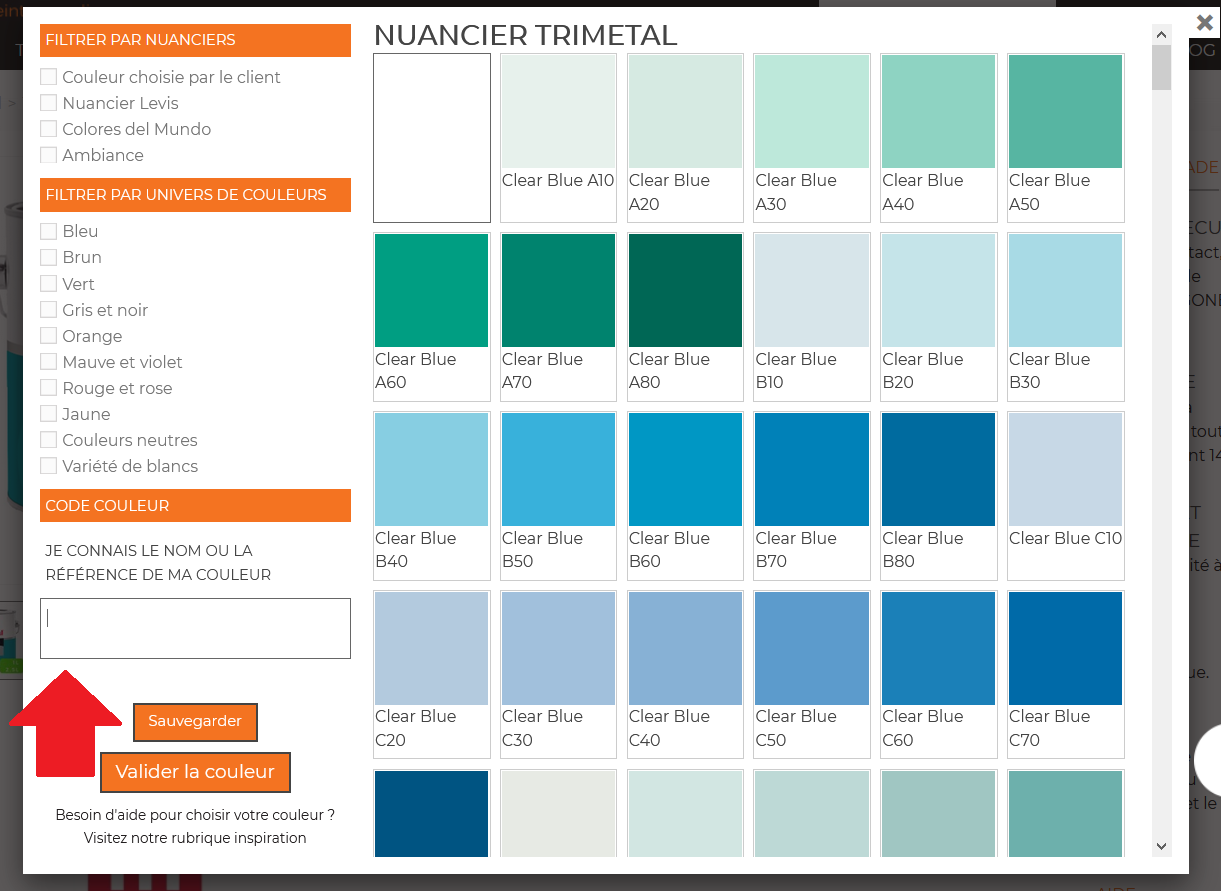 Ensuite en bas à gauche, vous voyez la case « je connais la référence de ma couleur ».