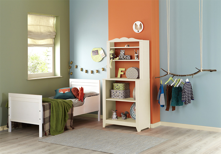 Si vous choisissez une couleur vive et sombre, peignez maximum deux murs de la même couleur. Si vous choisissez vert par exemple, opter pour différentes nuances de vert. Appliquez des teintes plus claires sur trois murs et choisissez un vert vif sur le mur qui obtient le plus de lumière. Une autre option consiste à peindre quelques bandes verticales ou horizontales en vert vif. Dans ce cas, choisissez des meubles blancs ou en bois naturels qui s’harmoniseront avec les couleurs de la chambre. Les différences de couleurs peuvent être marquées entre les murs mais également à l’horizontale, vous pouvez par exemple peindre le bas des murs en rose, et le haut en blanc ou en rose pastel, et séparer les deux parties par une frise.