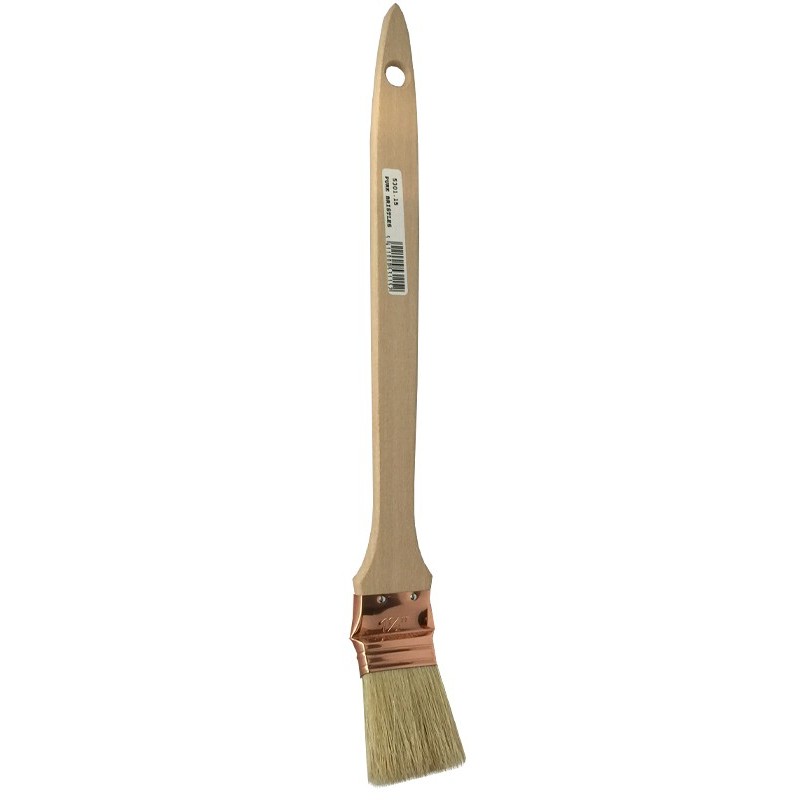 Pinceau radiateur avec long manche en bois, virole cuivrée et fibres synthétiques. Idéal pour peindre l'arrière et entre les radiateurs. Pour peinture synthétique et acrylique.